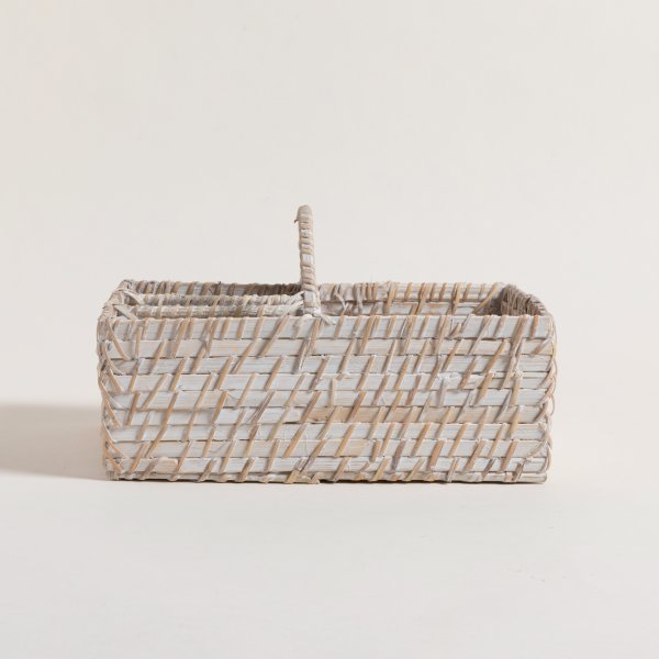 Este organizador rectangular combina la calidez del bambú con el trenzado del ratán, en un diseño robusto y práctico. Ideal para organizar utensilios, cubiertos o elementos de escritorio con estética rústica y elegante.