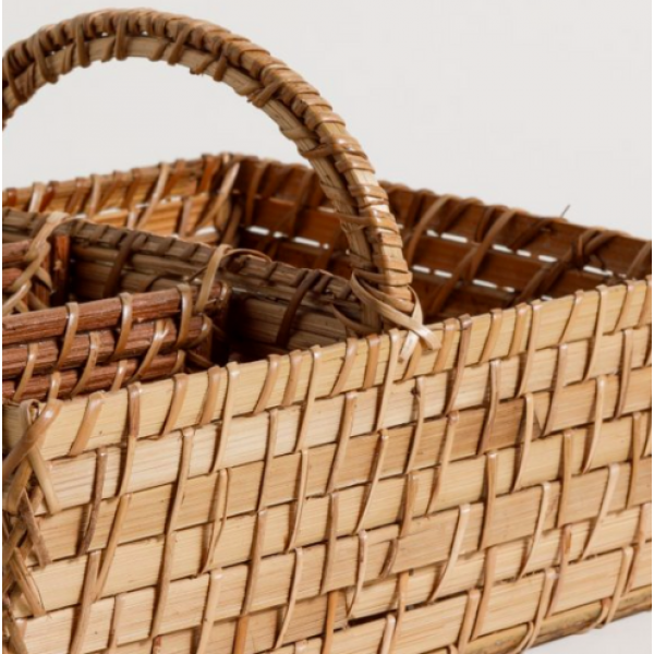 Este organizador rectangular de bamboo y rattan es perfecto para mantener tus utensilios siempre a mano sin resignar estilo. Ideal para cocinas que priorizan lo estético sin perder practicidad.